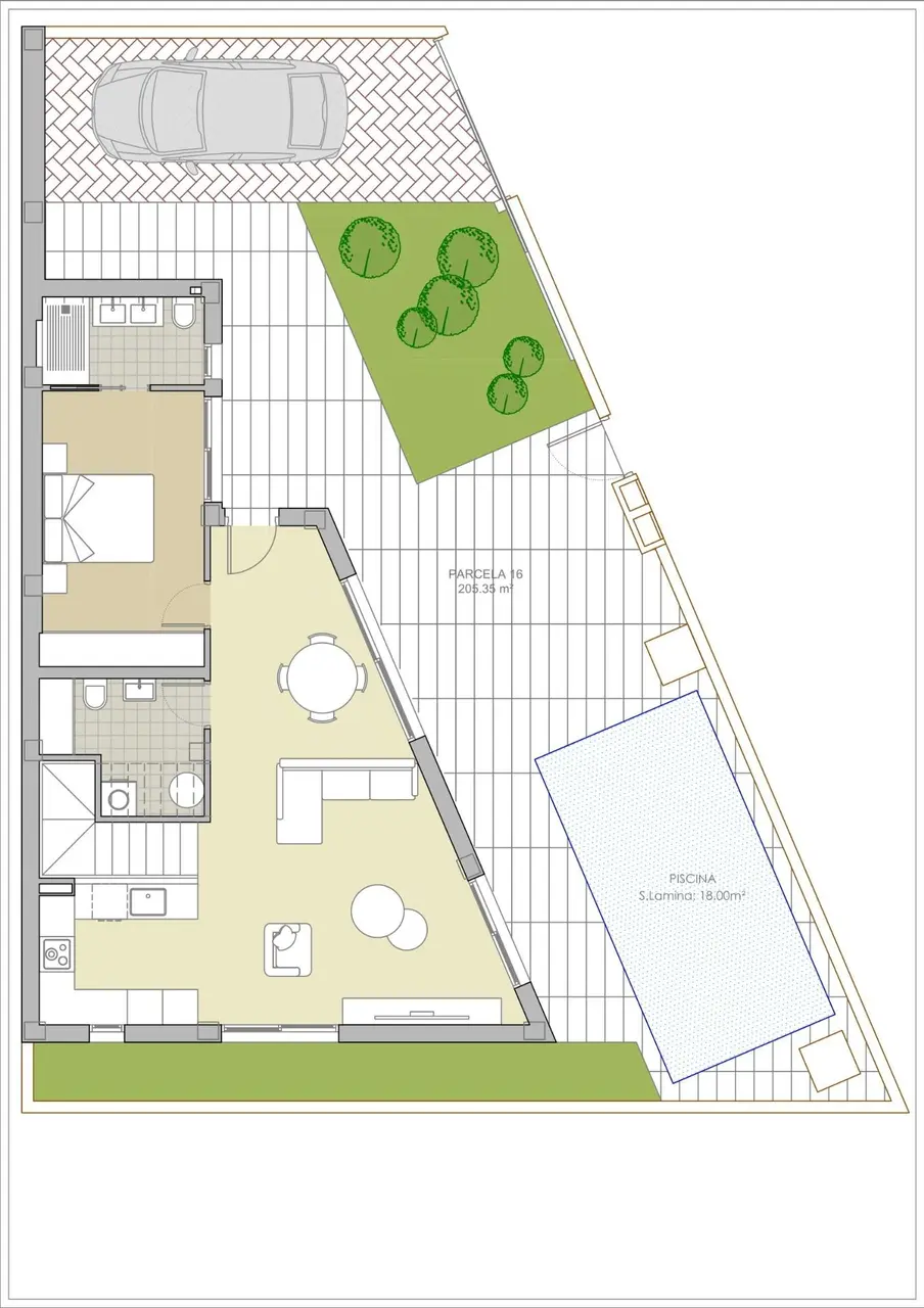 Willa ma 3 sypialnie, 3 łazienki, toaletę dla gości, kuchnię na otwartym planie z częścią dzienną i bezpośrednim dostępem do tarasu, prywatny ogród z miejscem parkingowym.
