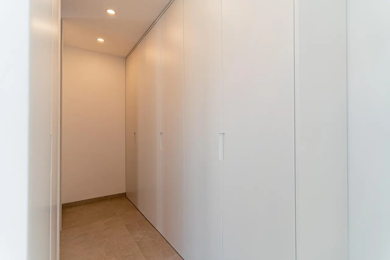 Jedna z sypialni obejmuje przylegającą garderobę, dodając dodatkowego luksusu.