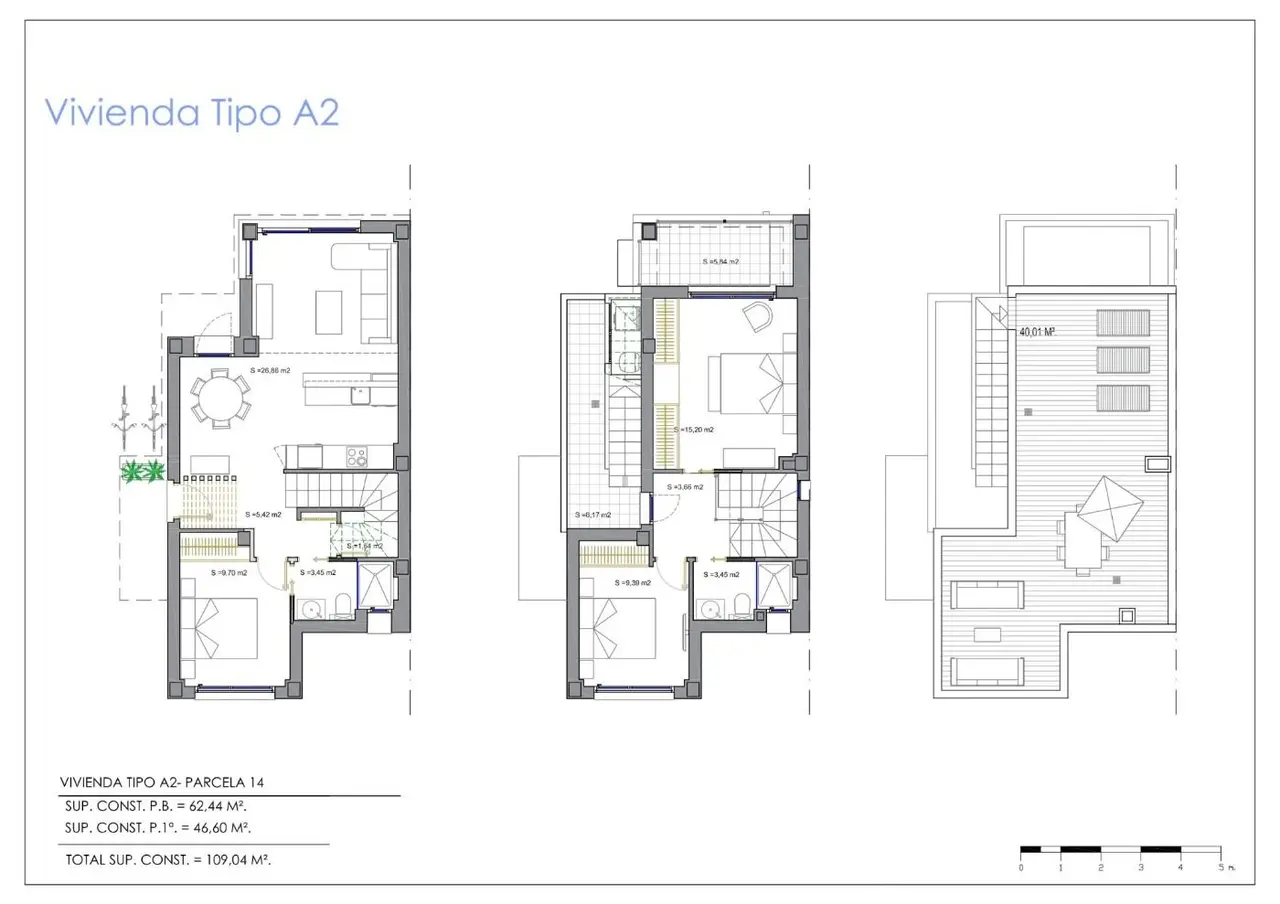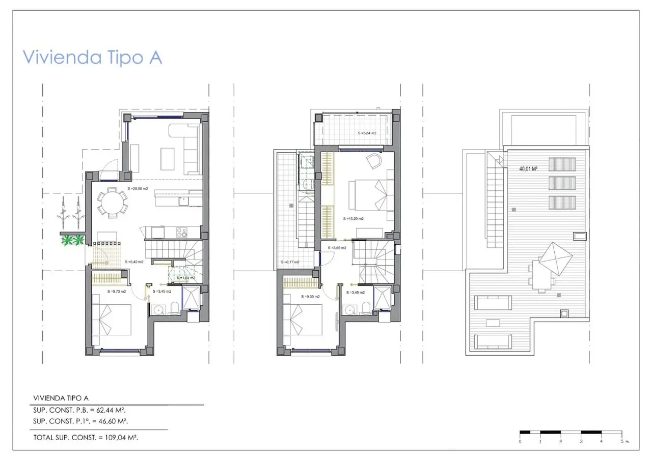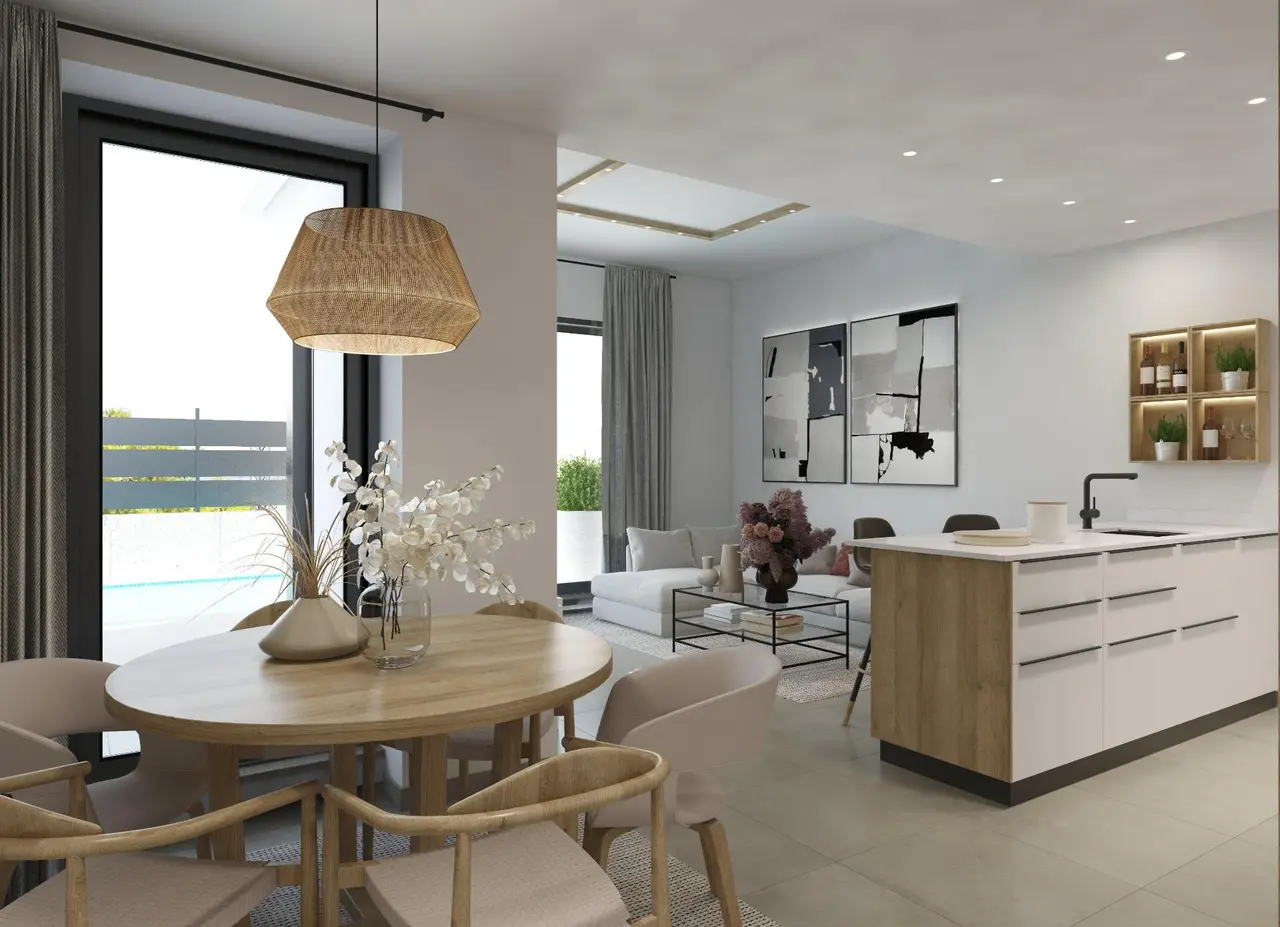 Każda nieruchomość posiada 3 sypialnie i 2 lub 3 łazienki i zostały zaprojektowane w nowoczesnym stylu i otwartej koncepcji, składającej się z w pełni wyposażonej kuchni i salonu-jadalni, wyposażonych szaf.