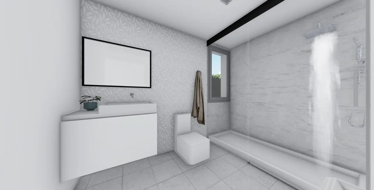 Armatura sanitarna, lustro z LED i stałym ekranem.