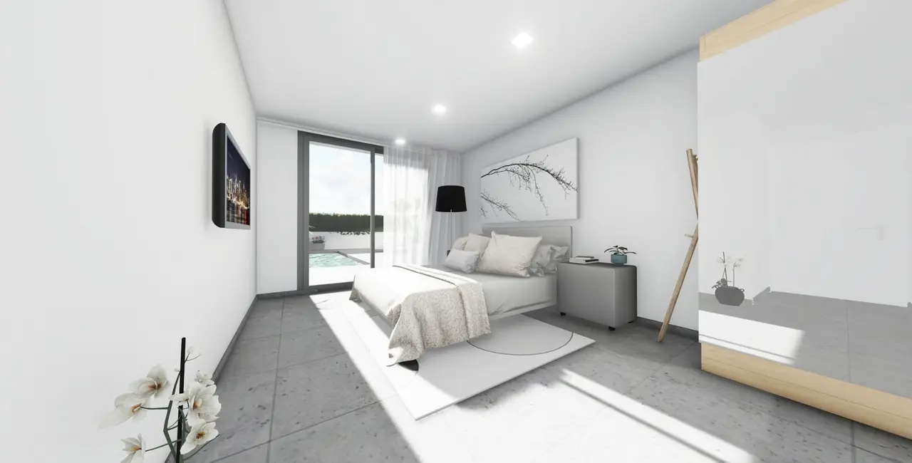 26 nowo wybudowanych nowoczesnych willi na parterze z solarium i prywatnym basenem, z 2 i 3 sypialniami, 500 metrów od plaż.