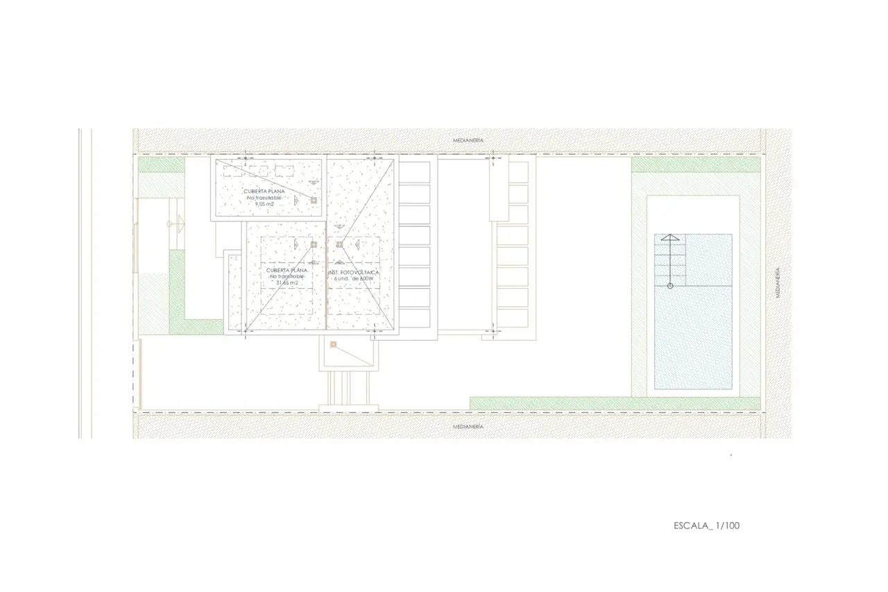 Wentylowane i izolowane dachy płaskie na płytach, z różnymi wykończeniami w zależności od ich lokalizacji i przeznaczenia.