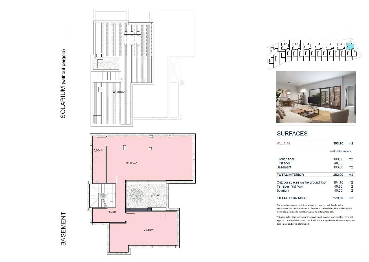 Każda willa została starannie zaprojektowana na trzech piętrach, zapewniając dużą przestrzeń i wygodny układ. Z 3 sypialniami, 2 łazienkami i dodatkową toaletą dla gości, domy te są idealne zarówno dla rodzin, jak i par. Kuchnia na otwartym planie płynnie przechodzi w jadalnię i salon, tworząc jasną, przestronną atmosferę. Kluczowe funkcje obejmują wbudowane szafy, prywatną piwnicę, solarium oraz prywatny ogród z basenem i miejscem parkingowym. Ciesz się panoramicznymi widokami i pięknym klimatem Murcji z solarium, które jest wstępnie wyposażone w kuchnię na świeżym powietrzu, jacuzzi i panele słoneczne.
