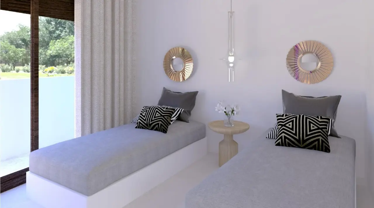 New Build mieszkalnych z niezależnych willi do wyboru dwa modele: podwójnej wysokości, z trzema sypialniami i trzema łazienkami i trzy sypialnie z dwiema łazienkami, wszystko na jednym piętrze.