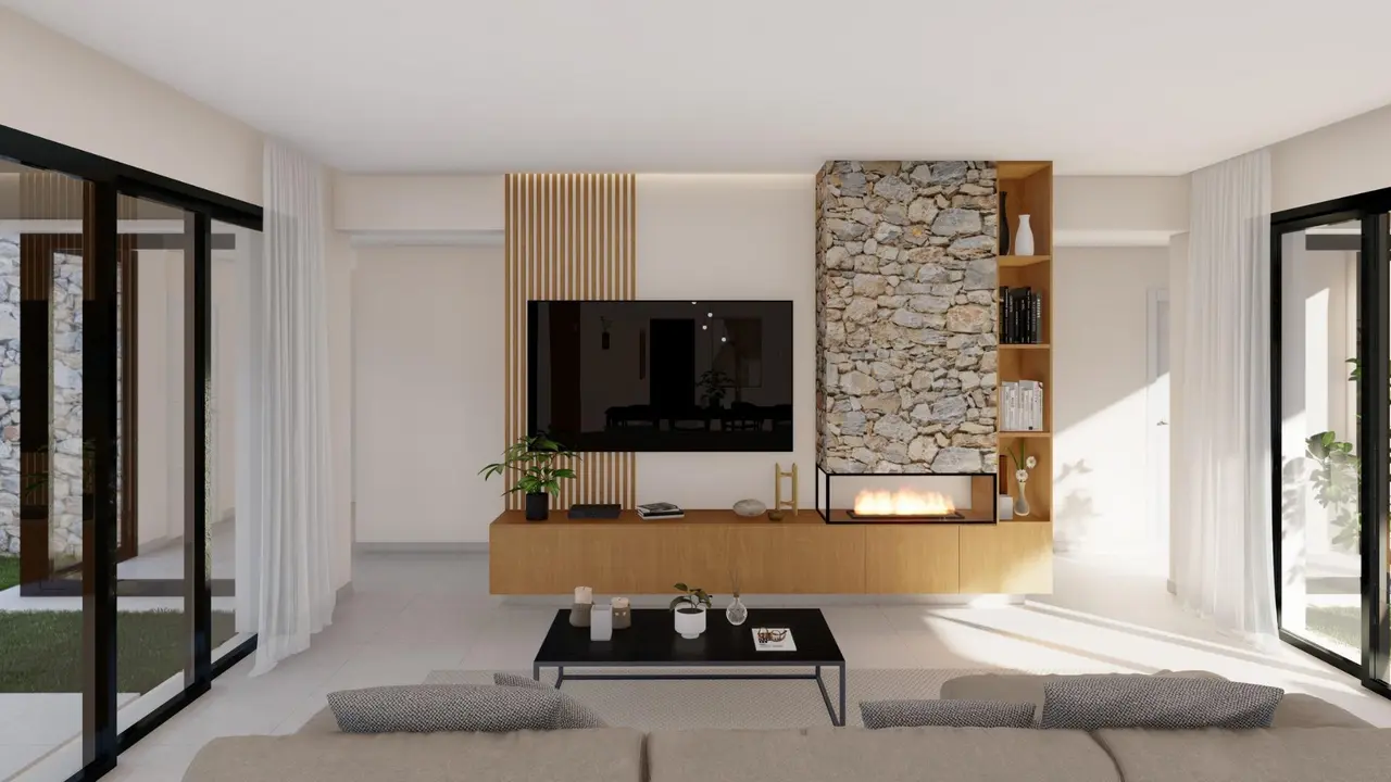 Cały dom zawiera wysokiej jakości materiały w stylu tradycyjnego hiszpańskiego gospodarstwa z nowoczesnym akcentem; podkreślając wysoką izolację termiczną i akustyczną oraz efektywność energetyczną A, szlachetne i naturalne materiały, takie jak drewno i kamień naturalny, w połączeniu ze stiukiem, betonem i szkłem dla doskonałej integracji z naturalnym środowiskiem.