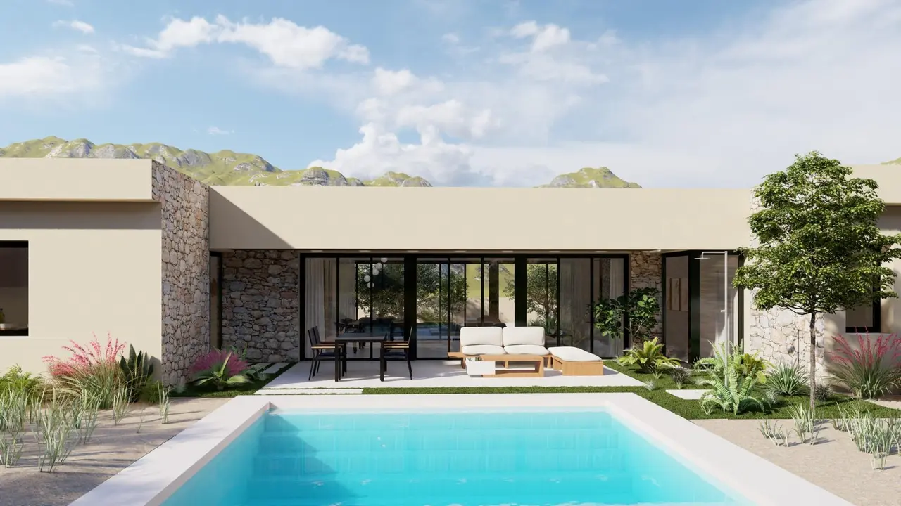 Cały dom zawiera wysokiej jakości materiały w stylu tradycyjnego hiszpańskiego gospodarstwa z nowoczesnym akcentem; podkreślając wysoką izolację termiczną i akustyczną oraz efektywność energetyczną A, szlachetne i naturalne materiały, takie jak drewno i kamień naturalny, w połączeniu ze stiukiem, betonem i szkłem dla doskonałej integracji z naturalnym środowiskiem.