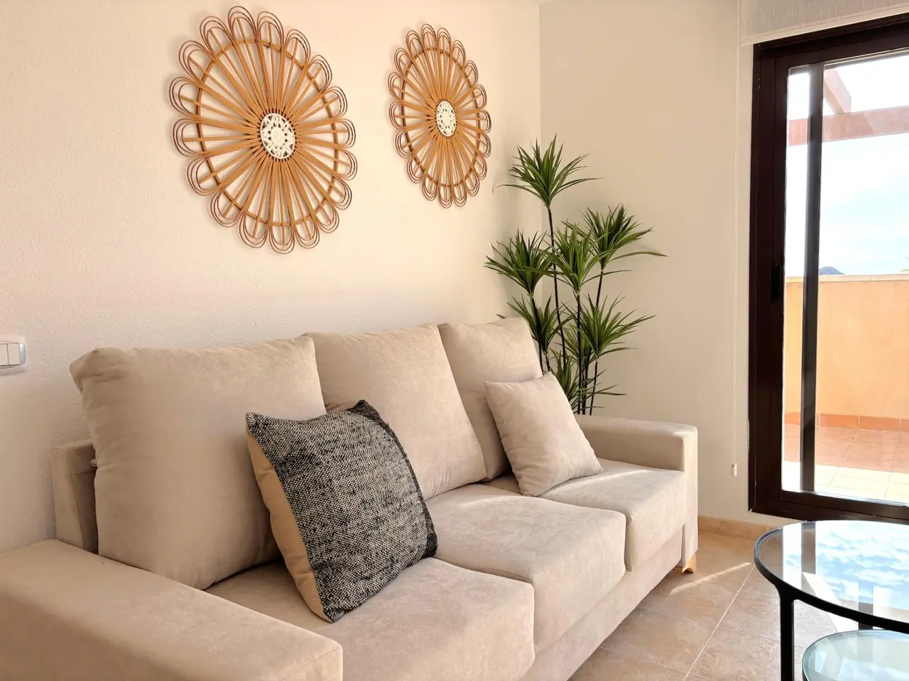 Nieruchomości składają się z 2 sypialni, 2 łazienek, dużego salonu, umeblowanej kuchni i dużego tarasu.