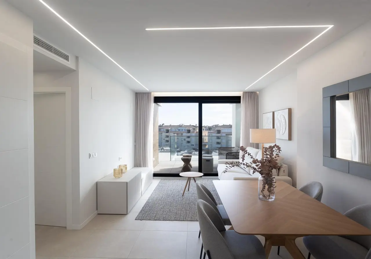 Apartamenty i penthousy z dwiema i trzema sypialniami, wszystkie z widokiem na morze. Wspaniałe części wspólne z dużym ogrodem i dwoma basenami, w tym jeden dla dzieci.