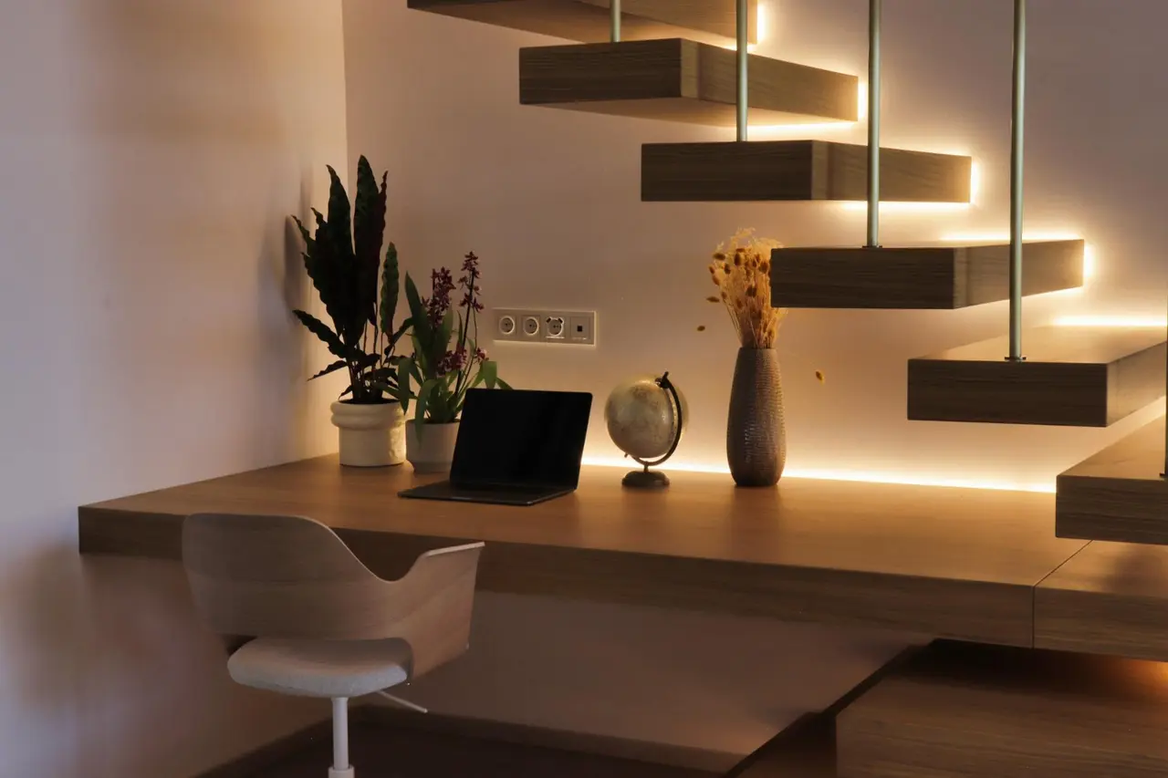 Balkon panoramiczny: Dostępny przez wewnętrzne pływające schody z automatycznymi przeszklonymi panelami, łączącymi wygodę z innowacyjnością.