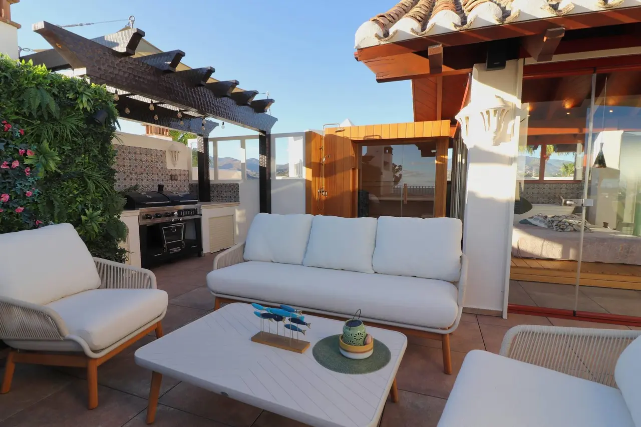 Odkryj ten wyjątkowy penthouse w prestiżowym kondominium Bahía de Velerín, położonym na New Golden Mile w Esteponie. Położona wzdłuż pierwszej linii plaży nieruchomość oferuje bezpośredni dostęp do brzegu i panoramiczne widoki na Morze Śródziemne.