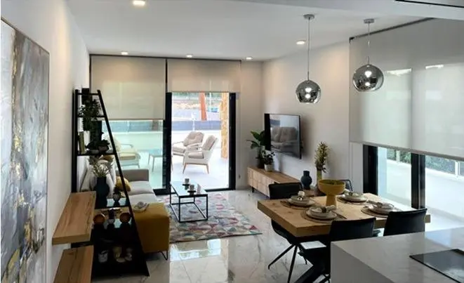 Nowoczesny budynek z 31 apartamentami z 2 sypialniami i penthouse’ami z 2 i 3 sypialniami, wszystkie z 2 łazienkami, kuchnią na otwartym planie z salonem, wbudowanymi szafami, przestronnymi tarasami o powierzchni od 20 m², podziemnym parkingiem i zamkniętą komórką lokatorską.