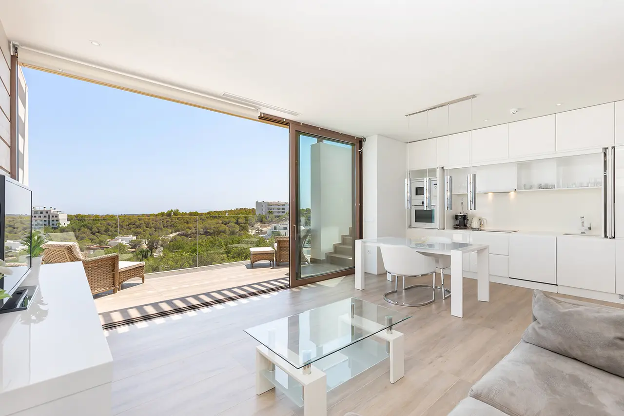 Luksusowy penthouse w Las Colinas Golf. Ten oszałamiający apartament na najwyższym piętrze oferuje przestronny salon-jadalnię i otwartą kuchnię, w pełni wyposażoną w sprzęty AGD, a także taras z widokiem na wspólny basen i tereny zielone. Nieruchomość ma dwie jasne sypialnie i prywatne solarium z otwartą kuchnią. W apartamencie znajduje się miejsce parkingowe i prywatne pomieszczenie gospodarcze w piwnicy.