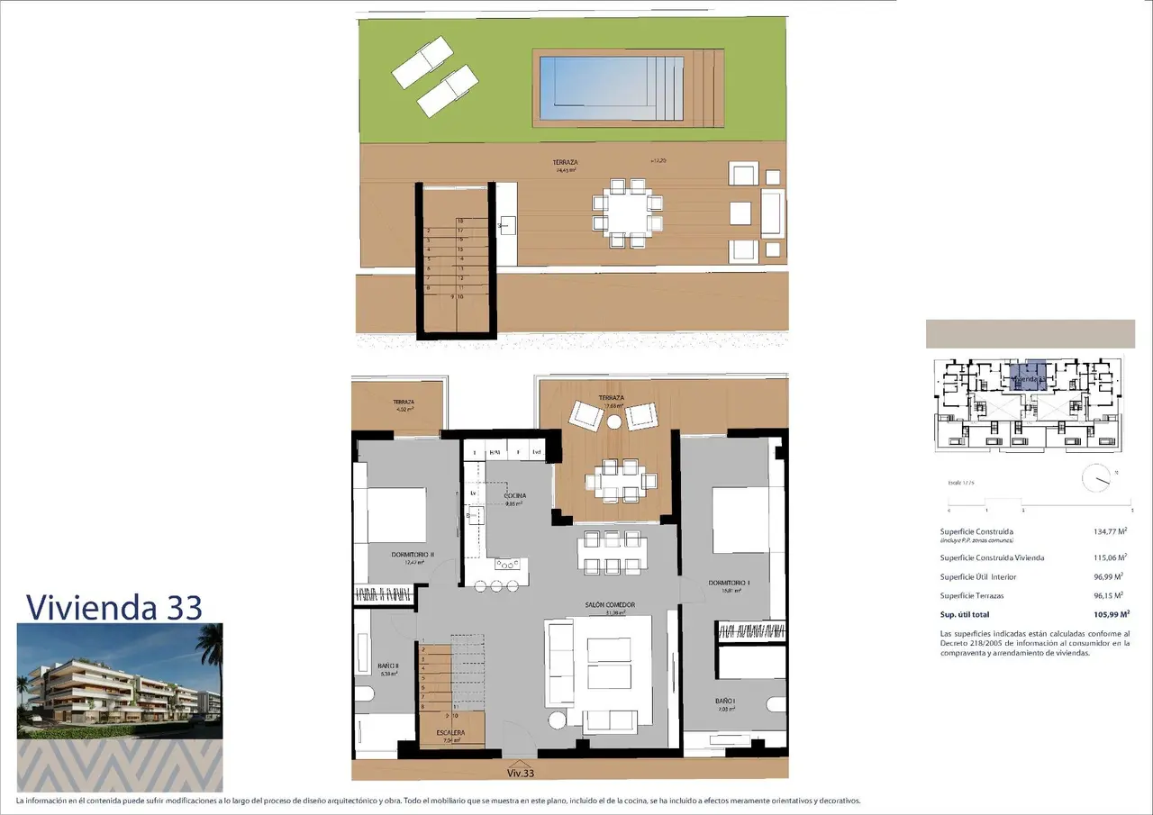 Ten wyjątkowy kompleks mieszkaniowy obejmuje 35 nowoczesnych domów z dwiema i trzema sypialniami, w tym wspaniałe dwupoziomowe penthouse’y z rozległymi tarasami i prywatnymi solariami z widokiem na morze. Każda rezydencja płynnie łączy życie wewnątrz i na zewnątrz z dużymi oknami i przestronnymi tarasami, zaprojektowanymi tak, aby zmaksymalizować naturalne światło. Opcjonalne prywatne baseny są również dostępne w penthouse’ach, co zwiększa luksus życia. Podziemny parking i bezpieczne schowki są wliczone w cenę, dzięki czemu domy te są nie tylko piękne, ale także praktyczne.
