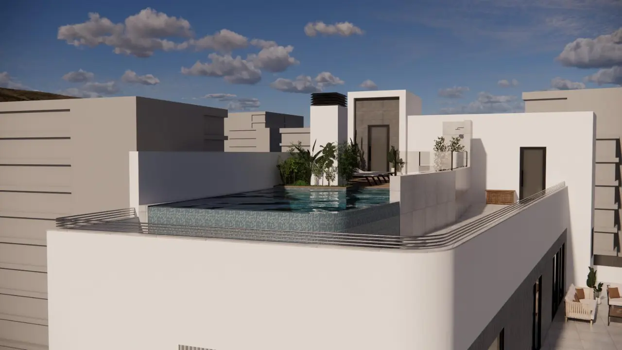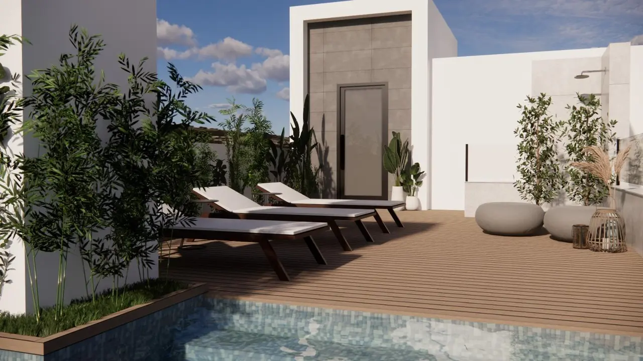 Wszystkie apartamenty mają dostęp do prywatnego basenu na tarasie słonecznym.
