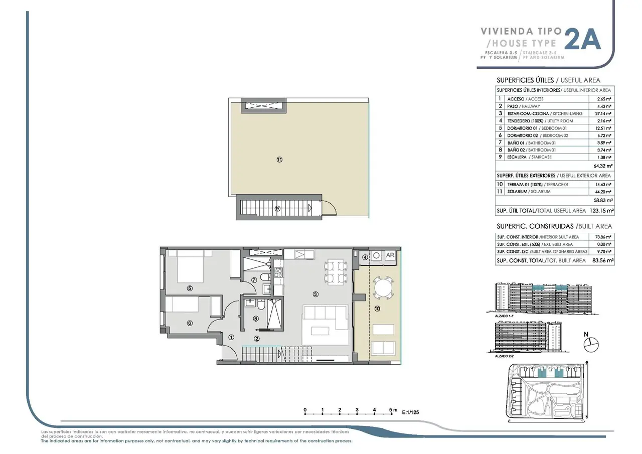 Apartamenty z 2 i 3 sypialniami i 2 łazienkami, kuchnia na otwartym planie z salonem, wyposażone szafy, wszystkie z dużymi tarasami.